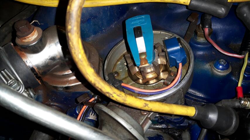 Die Zündung wurde auf eine Zündbox ungebaut die die Mustangs in den 90ern gehabt haben solln. Denk Motorcraft (die graue box)