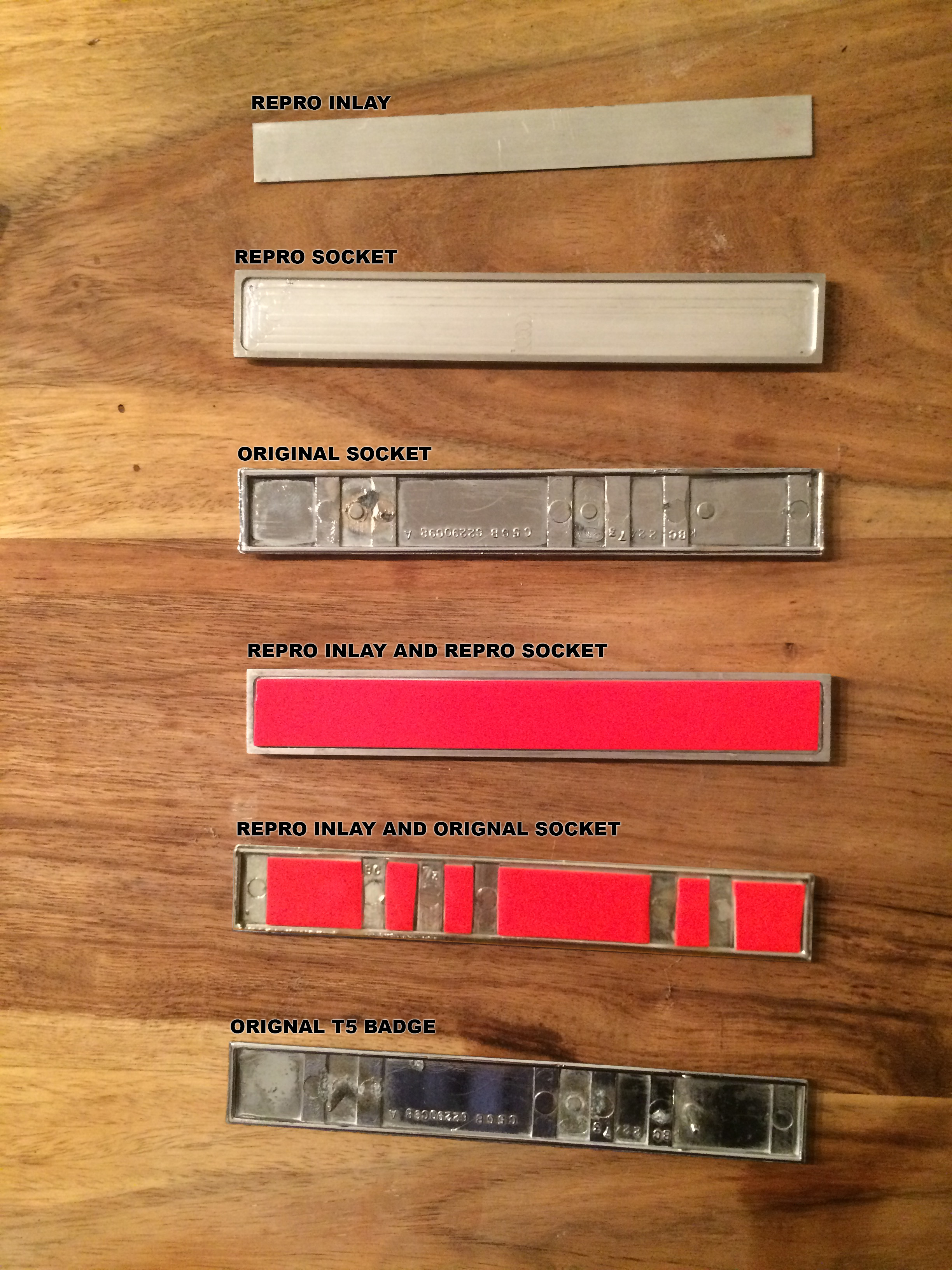 Ich will hier eigentlich nicht den Thread von Jörg zerschießen da er ein Original sucht aber man kann die Teile auseinander halten. Die Repro haben keine Teilenummer und sind poliert anstatt verchromt. Auch die Form ist etwas anders und eher eckig als rund. Siehe auch das Bild von der Rückseite. Das Inlay ist ein gefrästes Teil und keine Prägefolie also beim entfernen auch festzustellen.