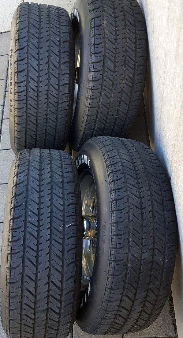 Verkauf von 2 St. 14x6 Alufelgen mit Reifen 195/70 und 2 St. 14x7 Alufelgen mit Reifen 215/70.