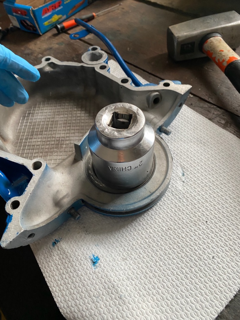 Ich habe den Tag heute gut genutzt und die Wasserpumpe eingebaut. Das Steuerkettengehäuse sollte immer locker sein und wird durch den Schwingungsdämpfer zentriert. Immer darauf achten !!!