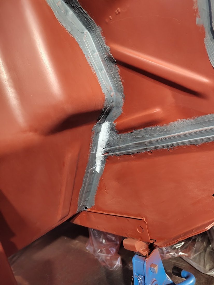 Zum Basislack hatte ich immer gelesen dass der am besten Nass in Nass mit dem Klarlack lackiert werden soll und eigentlich nichtmal abwischbar ist. Oder bin ich da auf dem Holzweg? Am Ende hatte ich mich auf Grund von der staubigen Luft in meiner Halle für den 1K Decklack als "Basis" entschieden. Bei den Versiegelungsnähten hatte ich das Spagat zwischen Funktion und Originalität gewagt, daher sind ein paar Stellen nicht verstrichen wo original die Dichtmasse aus der Blechdopplung gequollen ist oder nur eine Raupe gelegt wurde die nicht mehr angefasst wurde wie z.B. im Motorraum zur Spritzwand. Wobei das sah bei mir schrecklich aus wegen der billigen Kartuschenpresse, das musste ich dann doch verstreichen :lol: