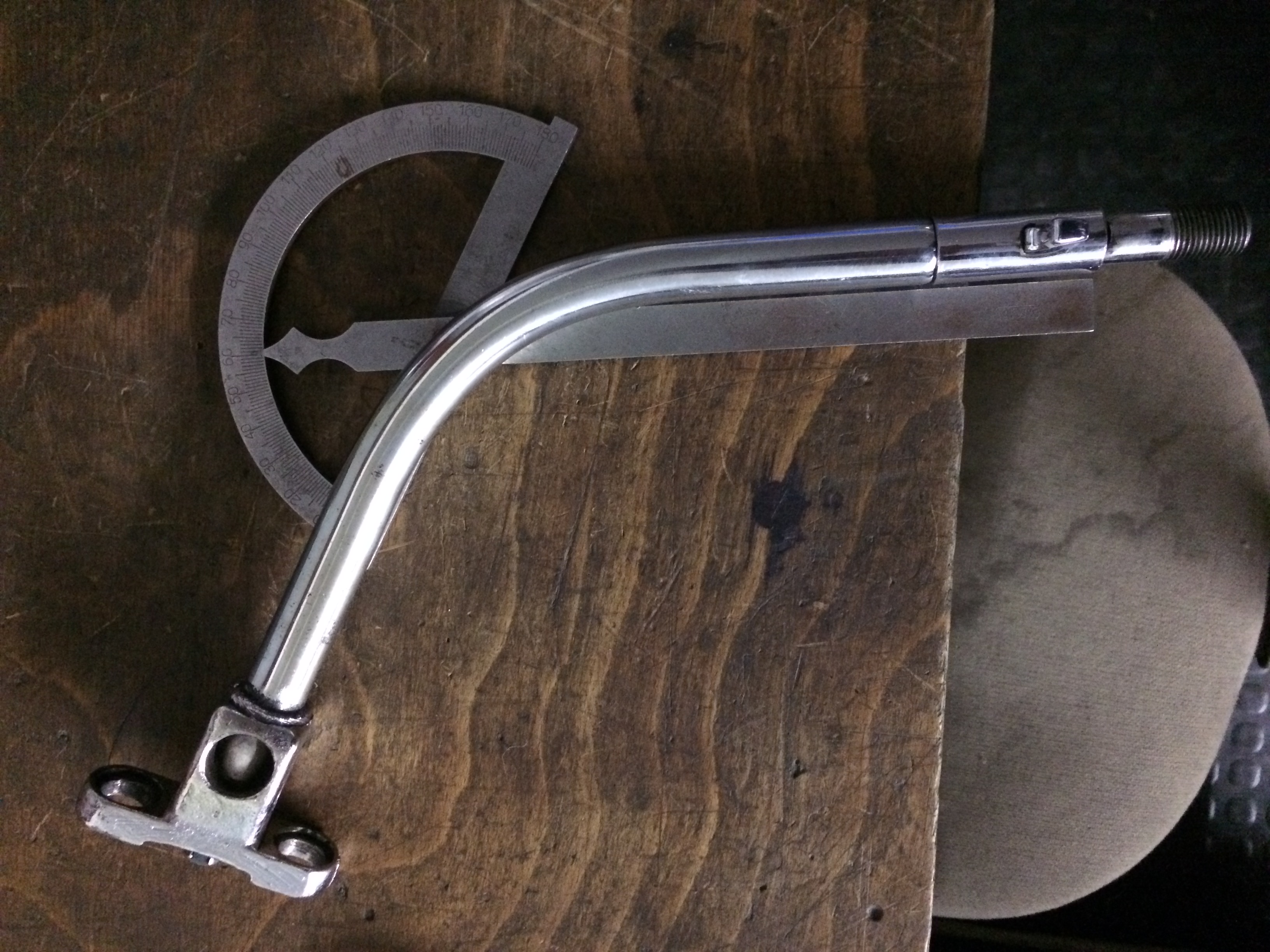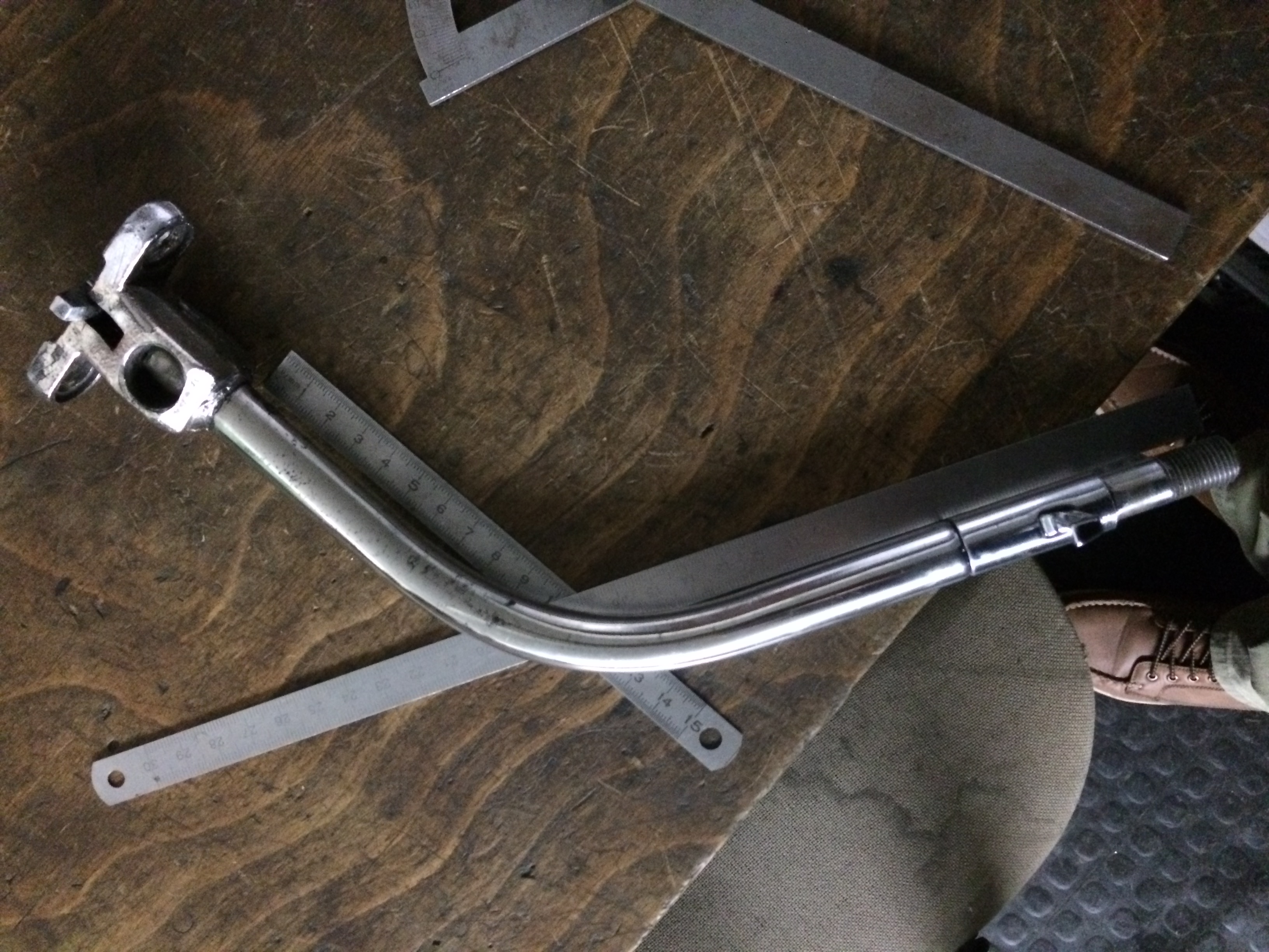 Hier mal ein paar Bilder. Hab den Durchmesser und die gesamte Länge vergessen *g* Der Winkel ist aber in etwas 60-62°. Den Radius kann ich dir leider nicht sagen. Bitte vergiss aber nicht, dass du keinen Hebel für den Rückwärtsgang hast. Oder brauchst du den für ein 3 Gang?