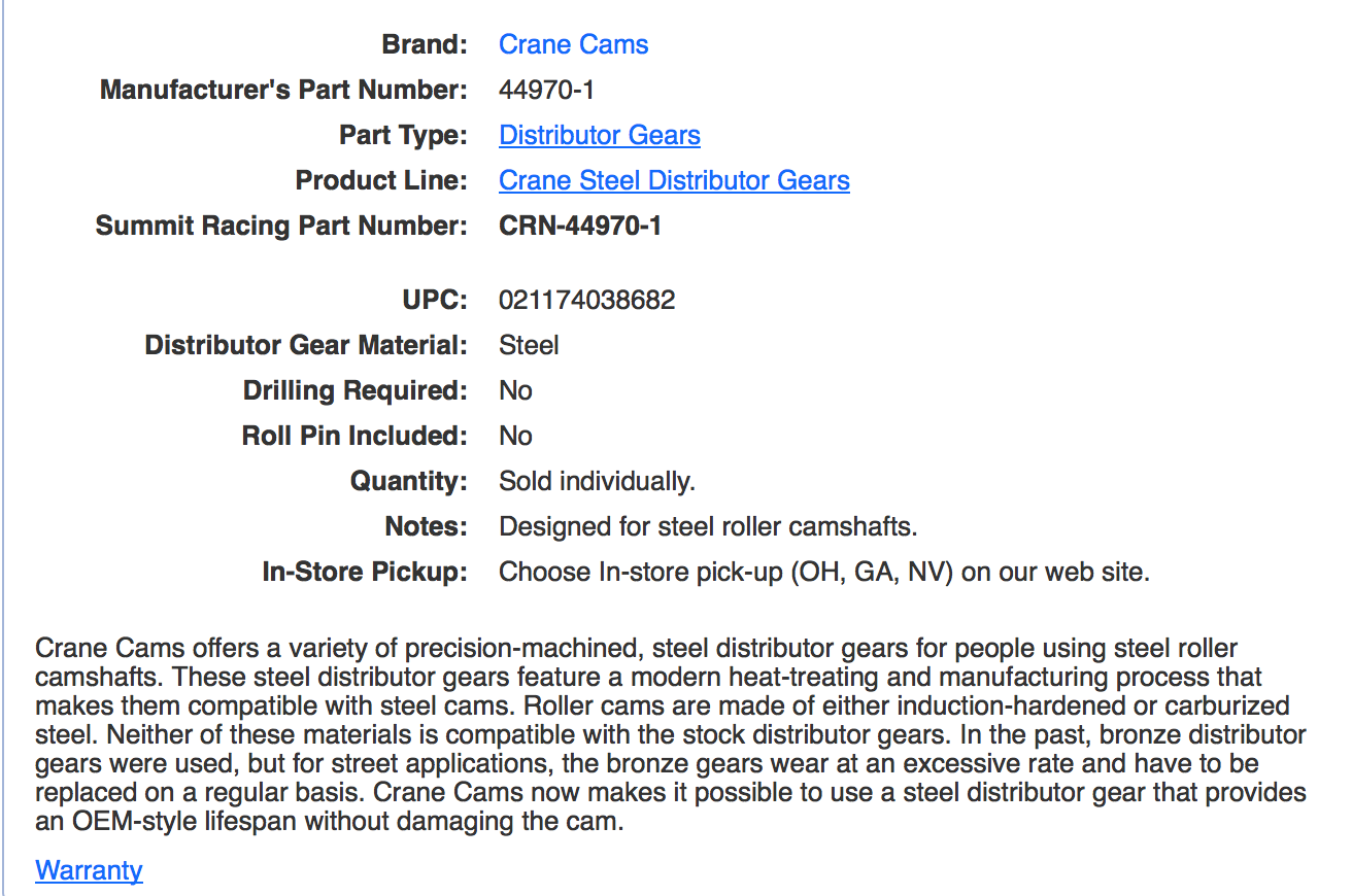 Mallory's steel distributor gears are precision-machined from alloy steel to exacting OE specifications. The gears have been heat-treated to ensure the proper hardness and give trouble-free service when used with the proper cam.