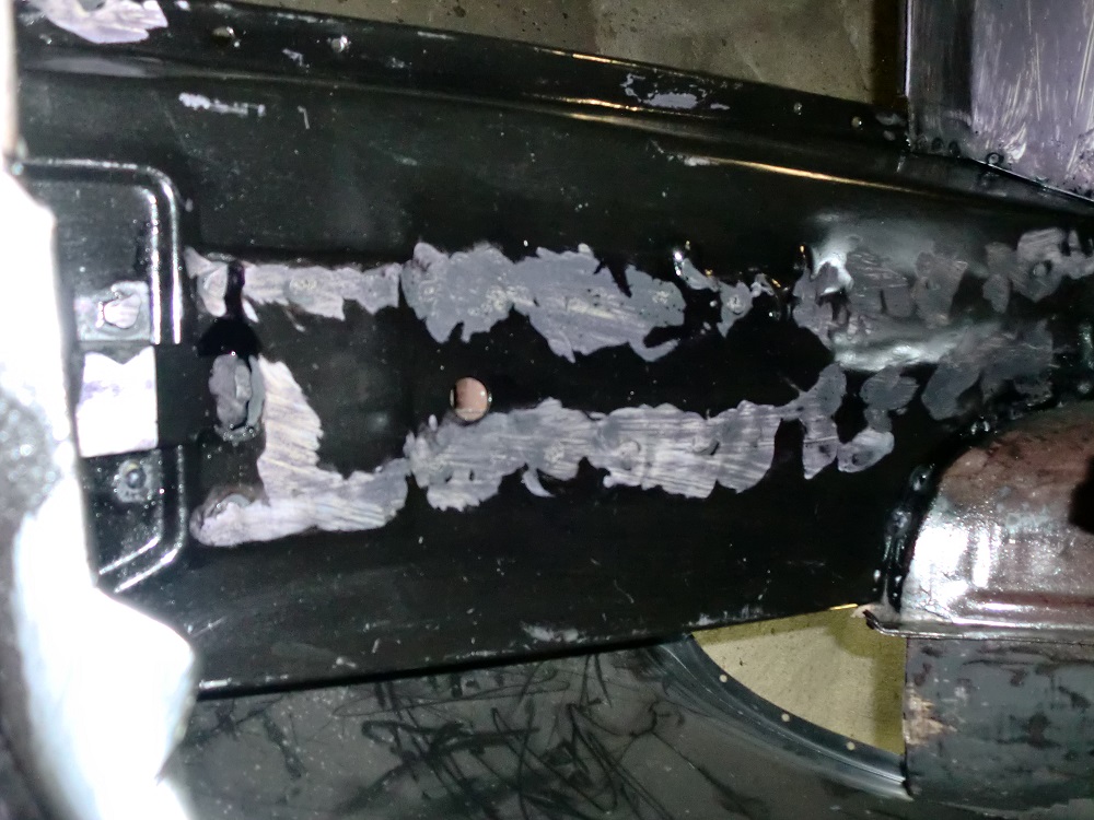 Heute habe im Kofferraum das Blech von der Bodengruppe zum Tank angepaßt und eingeschweißt, alle Schweißpunkte rundrum bearbeitet und Brunox aufgetragen.