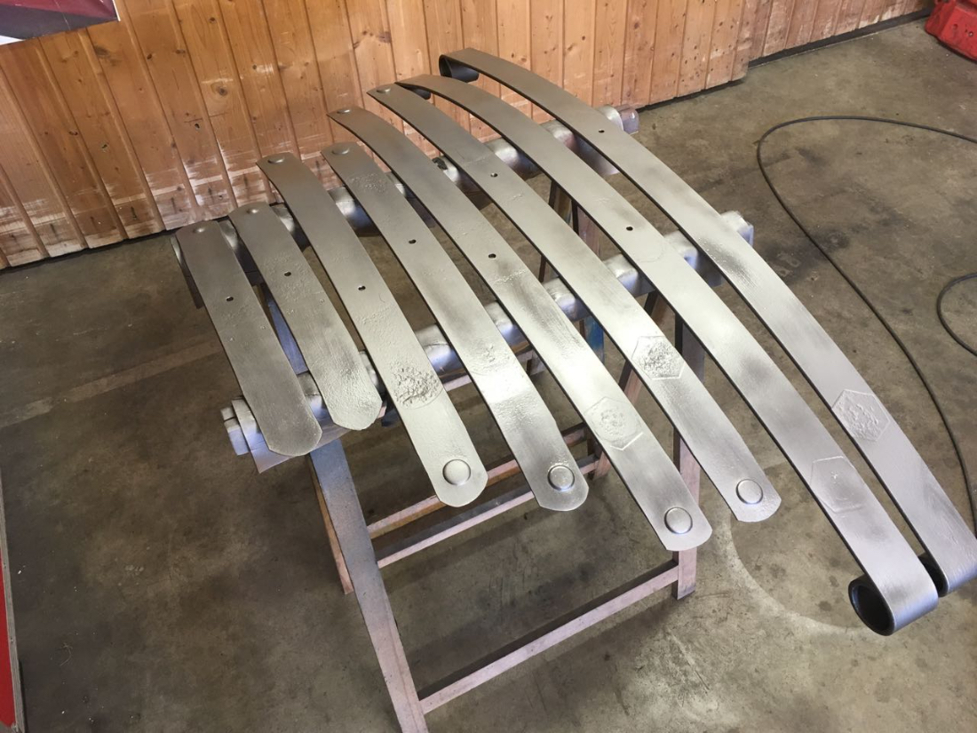 weiter gehts mit den originalen blattfedern. ich habe sie zerlegt und sandstahlen lassen.