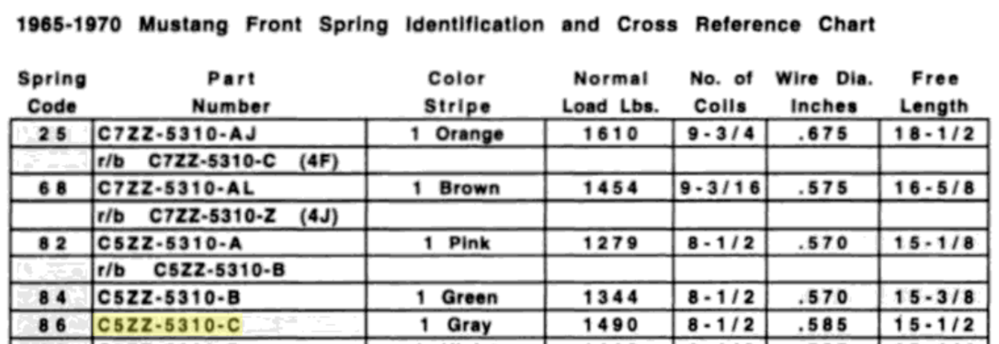 Die Federn hatte ich damals von PonyParts bestellt, irgendwelche Standard Dinger. Dann Shelby Drop gemacht und Fahrwerk einstellen lassen.