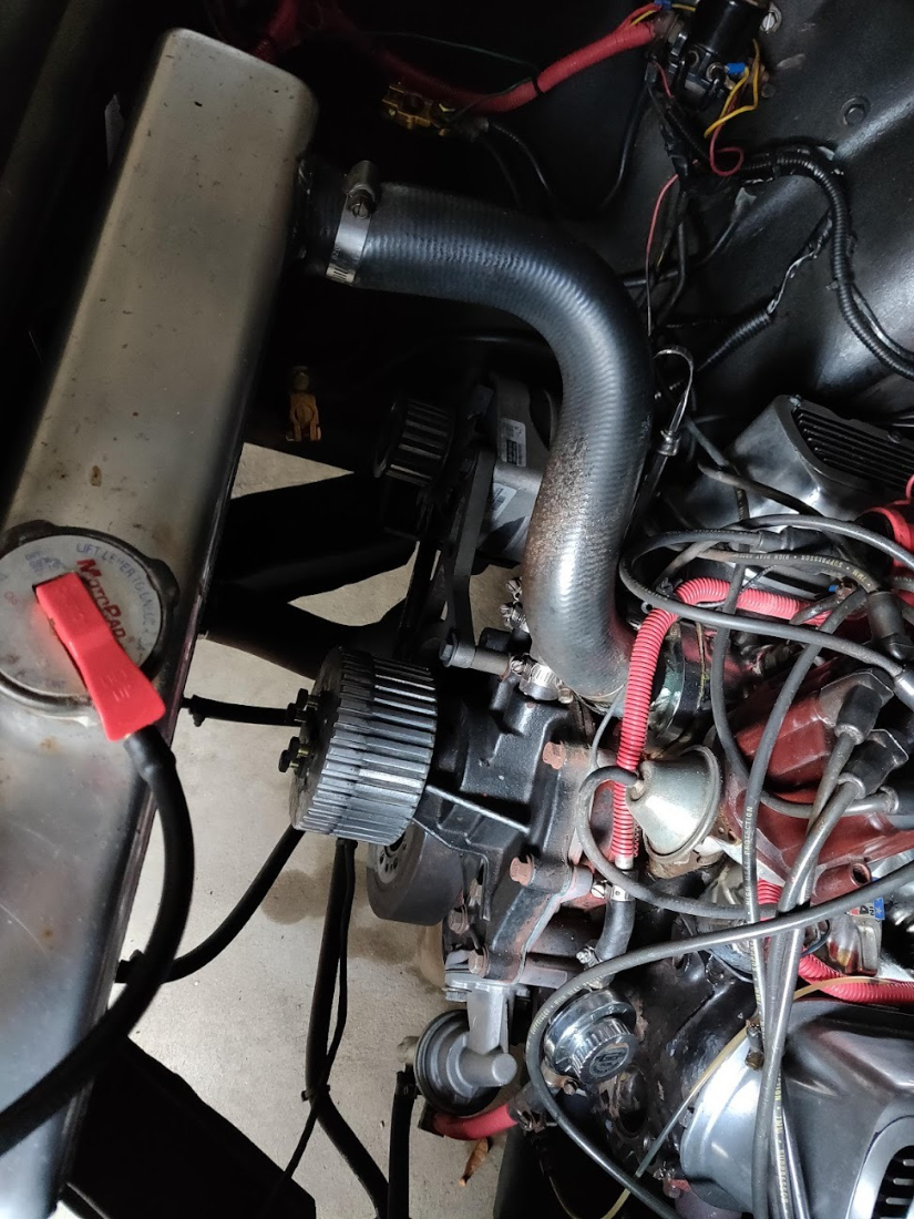 Eine Inspektion sollte gemacht werde! Alle Flüssigkeiten sollten getauscht werden, Bremsen ziehen in eine Richtung, also prüfen. Fahrwerk und Lenkung sollen ebenfalls geprüft werden. Ein weinendes Geräusch während der Fahrt hatte ich noch zur Diagnose mitgegeben. Außerdem sollte der von mir montierte Riementrieb geprüft werden da das Kurbelwellenpulley etwas eierte. Dazu hatte ich noch den präventiven Austausch der Wasserpumpe veranlasst, wo der Kühler für den Kühlmitteltausch ja eh leer werden würde. Dazu noch Zündkabel und Kerzen, Vergaser einstellen. Zuletzt noch Ventildeckeldichtungen und Ventilspiel einstellen.
