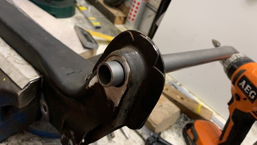 Die ausgeschlagenen Löcher habe ich ausgebohrt und ein Präzisionsstahlrohr eingeschweißt. Dann wurden auf das neue Maß Buchsen angefertigt.