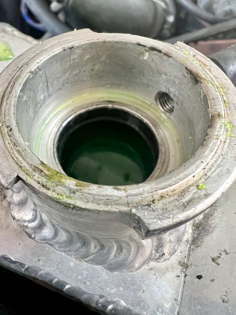 Neues Problem: das schöne neue verchromte Thermostatgehäuse ist undicht. Also.... da muss ich nochmal dran, dann kommen auch gleich neue Schläuche ins Auto. Wartungsstau.... den vorigen Besitzer würde ich inzwischen gern mal unter 4 Augen sprechen